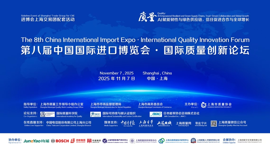 11月7日,第八届中国国际进口博览会上海交易团配套活动“国际质量创新论坛”在上海举办。本届论坛紧扣进博会“新时代,共享未来”核心理念,以“质量:AI赋能韧性与绿色供应链,信任促进合作与全球增长”为主题,汇聚来自国际质量科学院、国际可持续与碳认证组织、日本能率协会、国际咨询工程师联合会等国际质量及相关专业组织及政府部门、国内外知名企业的领导、专家与企业家代表的7万多位中外嘉宾代表,以线上和线下方式参会。论坛凝聚了强烈共识:人工智能(AI)正在引发一场深刻的质量变革、效率变革和动力变革,成为重构全球产业链、供应链韧性、绿色、信任与可持续增长的核心驱动力。